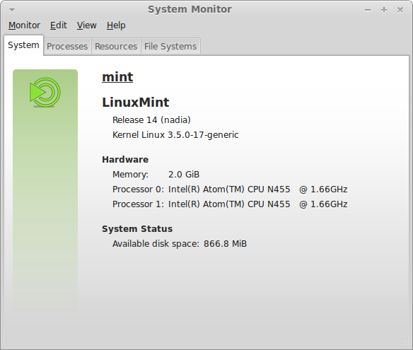انقر على القائمة Menu في شريط المهام واختر System Monitor، انتقل إلى علامة التبويب System.